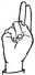 На ћирилици написано ИРИНА КОМАРНИЧКИ састоји се из 15 слова [?]. Исписано ћириличном једноручном азбуком за глувонеме: